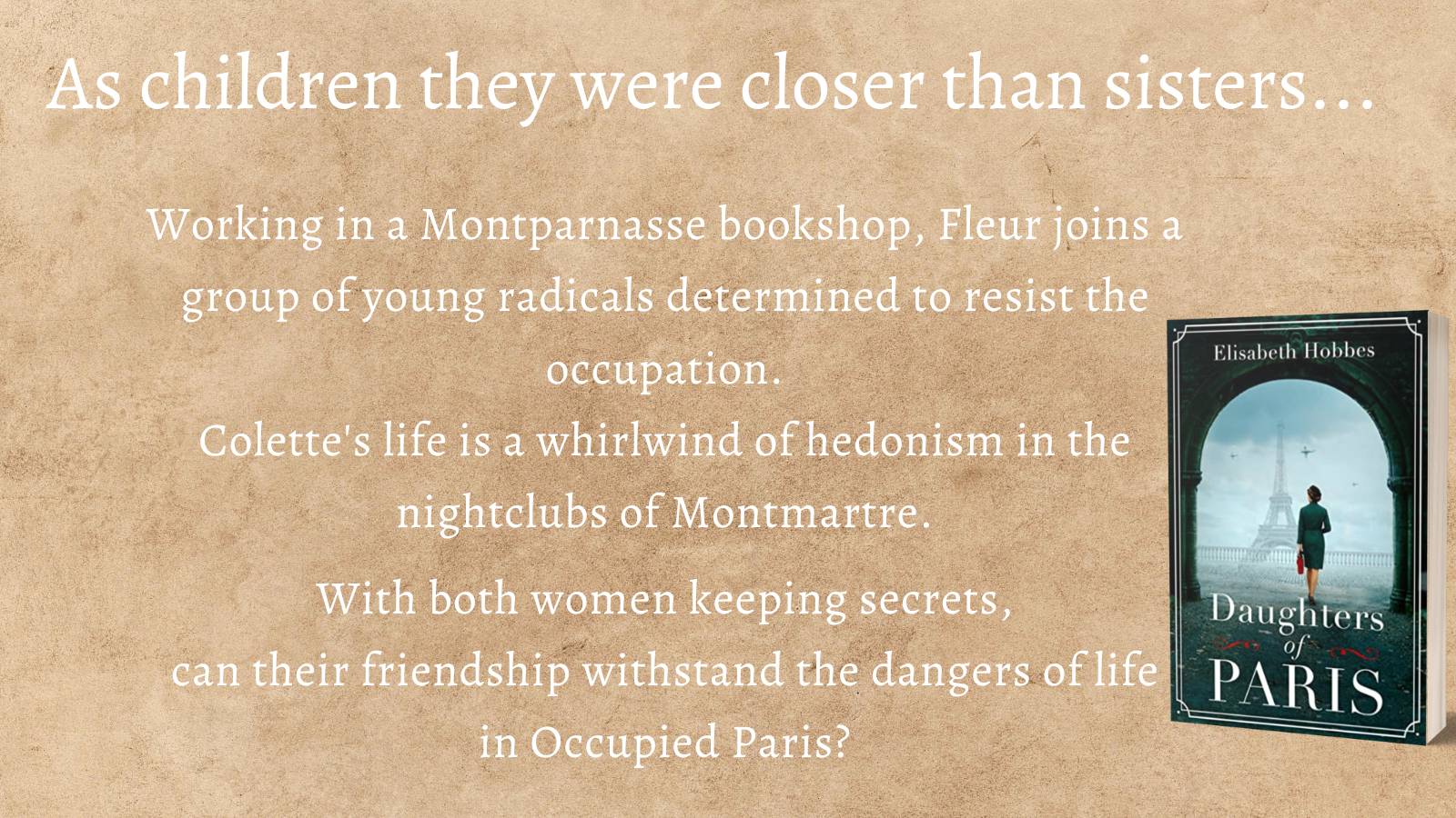 Daughters of Paris is my second foray into the world of wartime espionage and resistance. After I had written a Secret Agent in the book of that name where my British character was living undercover in France, I wanted to see the war from the eyes of someone French. I knew it needed to be told from both women’s viewpoints and their friendship is as important as their romances, if not more. Paris is such gorgeous city and I’m lucky to have visited it numerous times. I felt like it deserved to be a character of its own.